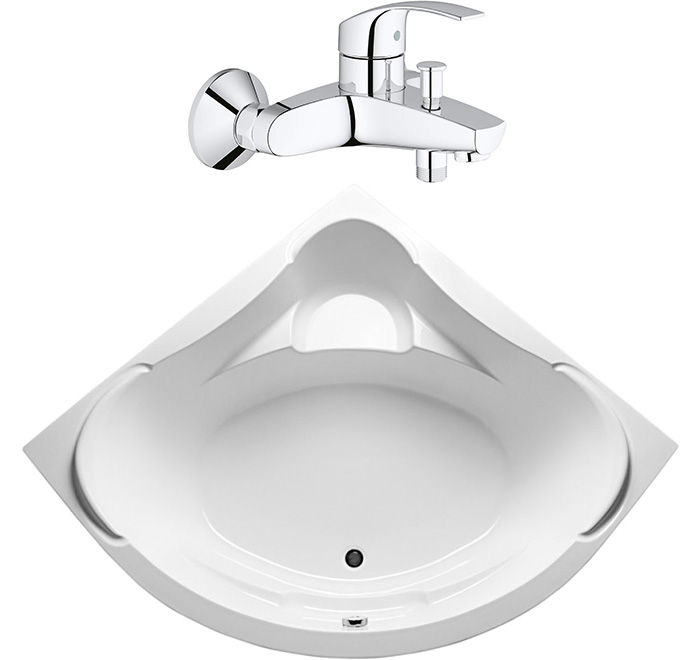 - Акриловая ванна K-Rossei — угловая форма, компактный размер 150х94х65 см и самоочищающееся покрытие.